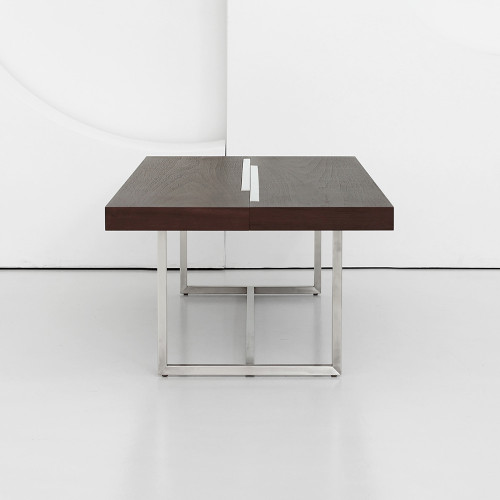 스테인레스스틸 위 헤어라인 마감, MDF 위 무늬목